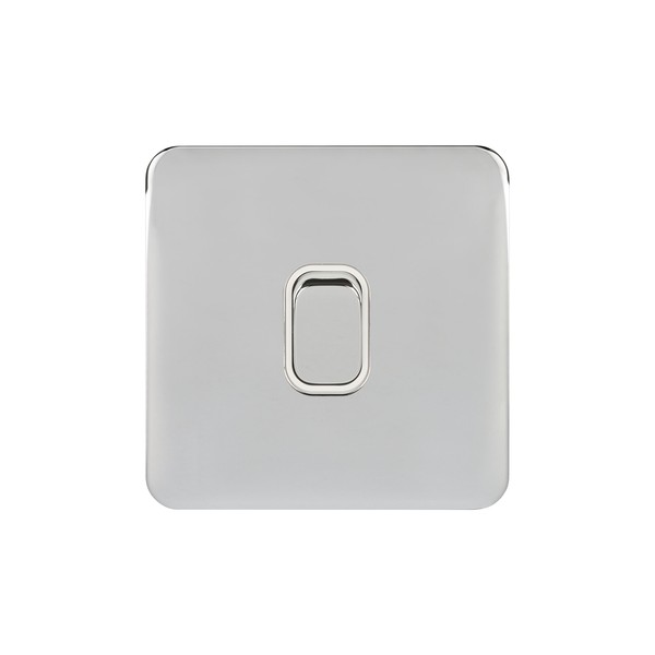 Schneider Electric Lisse Screwless Deco - Single Intermediate Light Switch, 10AX, GGBL1014WPC, Polished Chrome with White Insert