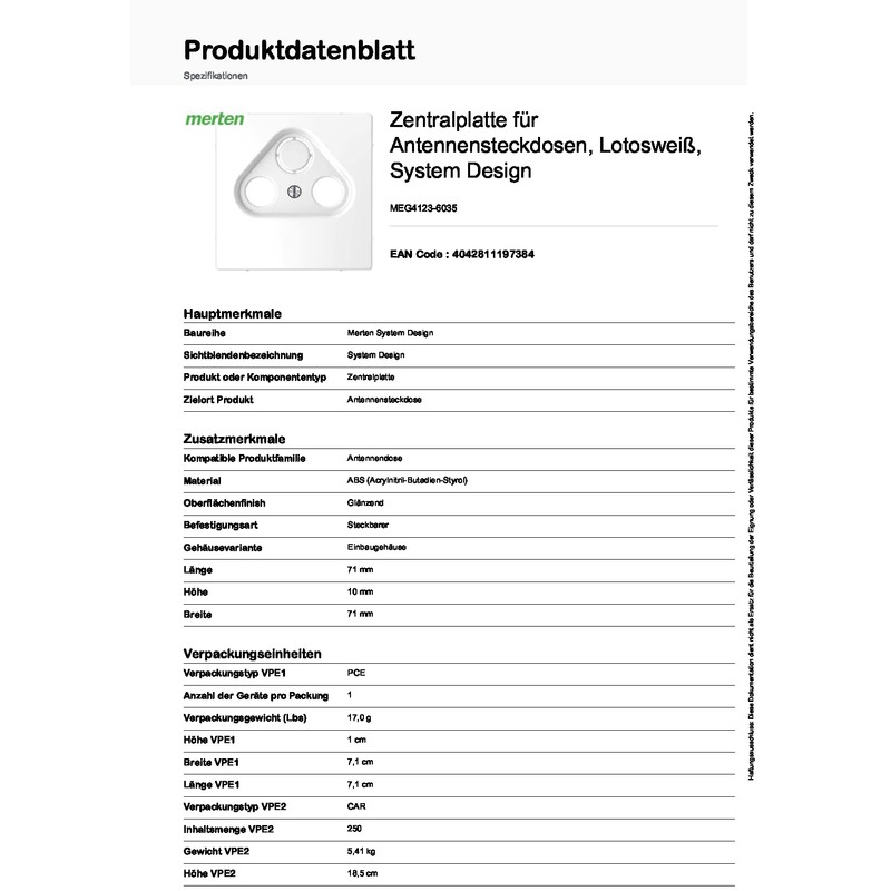 Schneider Electric Merten Central Plate for Antenna Sockets, System Design, Lotus White, Item Number MEG4123-6035