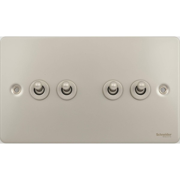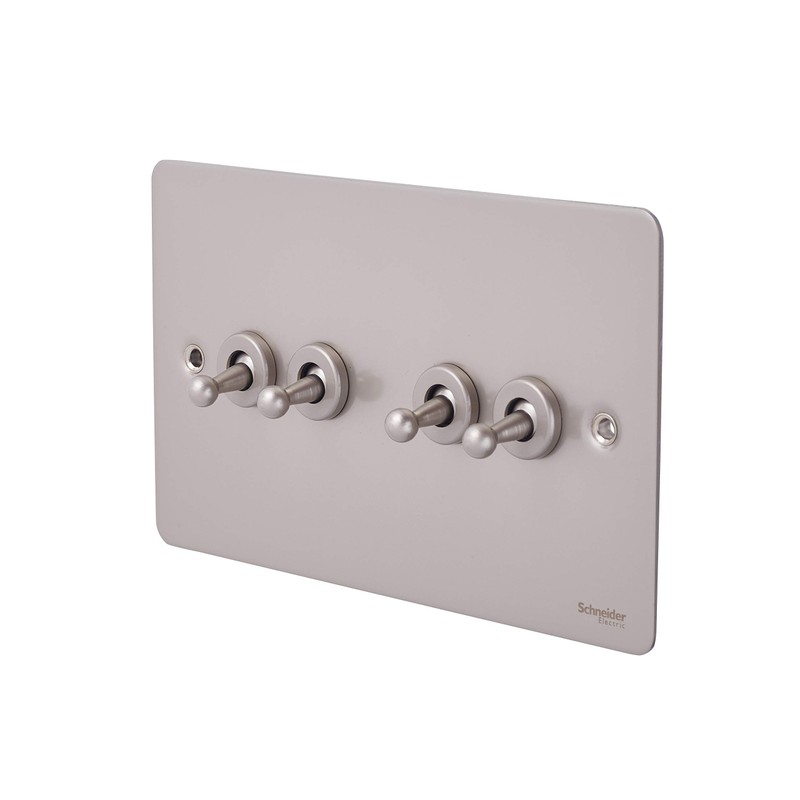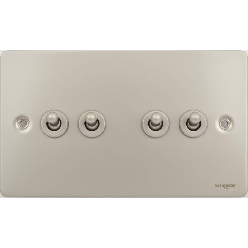 Schneider Electric Ultimate Flat Plate - 4 Gang Toggle 2 Way Light Switch, 16AX, GU1242TPN, Pearl Nickel