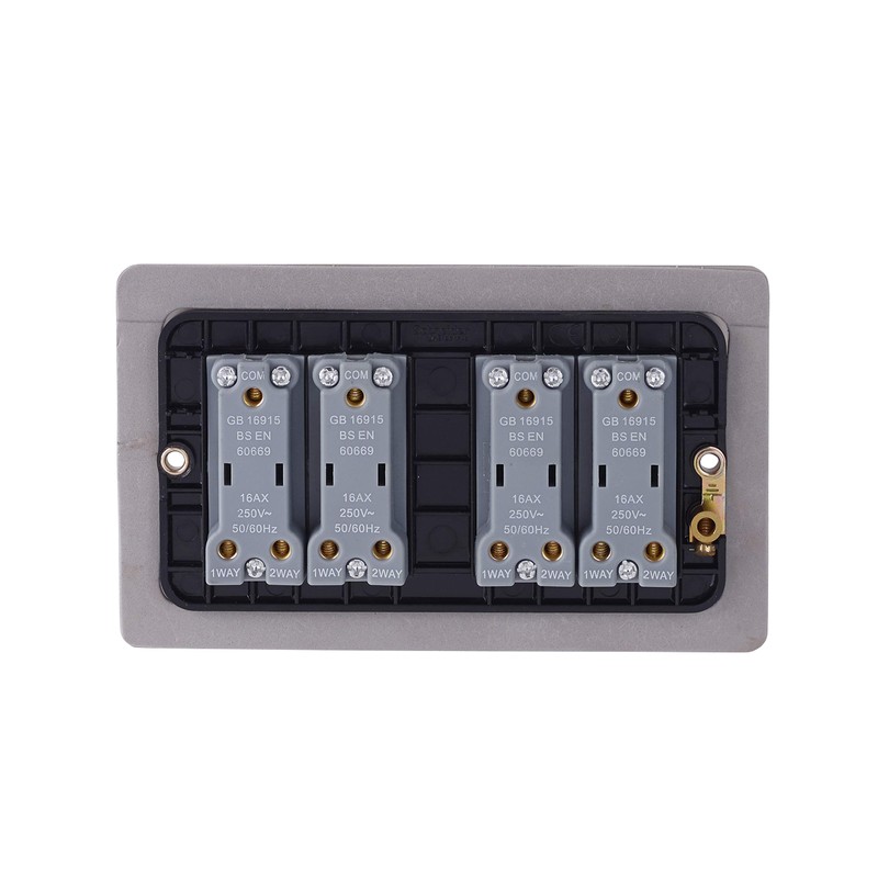 - 4 Gang, two way toggle switch requires minimum 25mmm deep mounting box