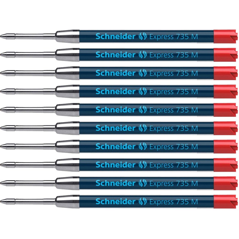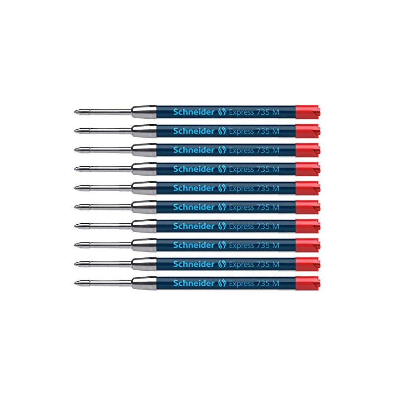 - Lieferumfang: 10er Pack Schneider Express 735 M Kugelschreibermine (ISO 12757-2 G2, dokumentenecht) rot