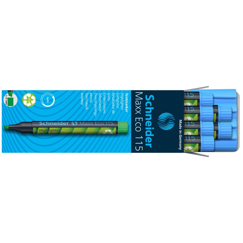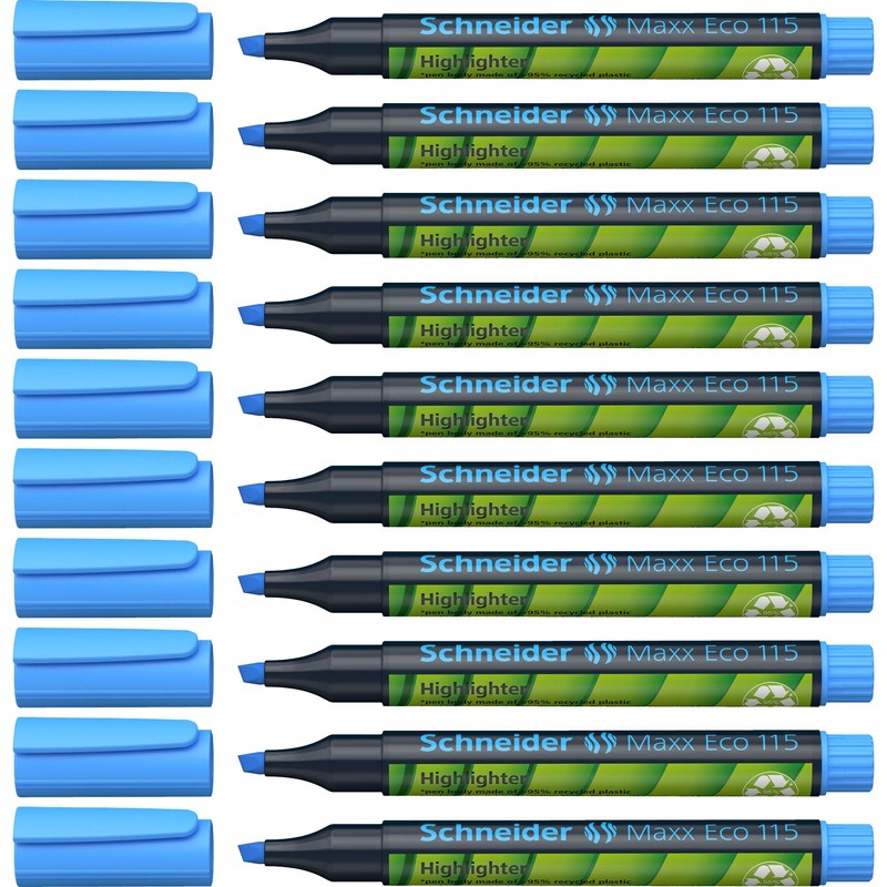 Schneider Maxx Eco 115 Textmarker (nachfüllbar mit Patrone 666, lichtbeständig, Clip) 10er Packung blau