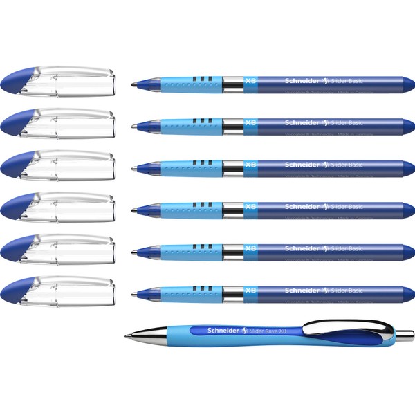 Schneider Schneider 151277 Slider Basic XB 6 Stück und 1x Slider Rave XB Kugelschreiber mit Etui, Schreibfarbe blau