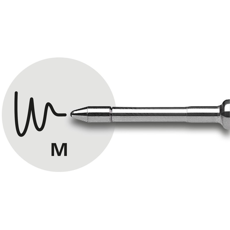Kugelschreibermine Slider 755 Verwendung für Produkt: Passend in alle Schneider Kugelschreiber-Modelle und Gelschreiber mit universeller Passform "Plug & Play", sowie viele am Markt befindliche Kugelschreiber mit G2-System Typbezeichnung der Mine: Internationale Großraummine im G2-Format mit revolutionärer ViscoGlide®-Technologie Ausführung Mine: M, schwarz, dokumentenecht Typbezeichnung der Mine gemäß ISO-Norm: ISO 12757-2 G2 Material des Schaftes: Metallmine. Länge: 98 mm Die verschleißfeste Edelstahlspitze garantiert, dass der große Pasteninhalt vollständig und schmierfrei genutzt werden kann