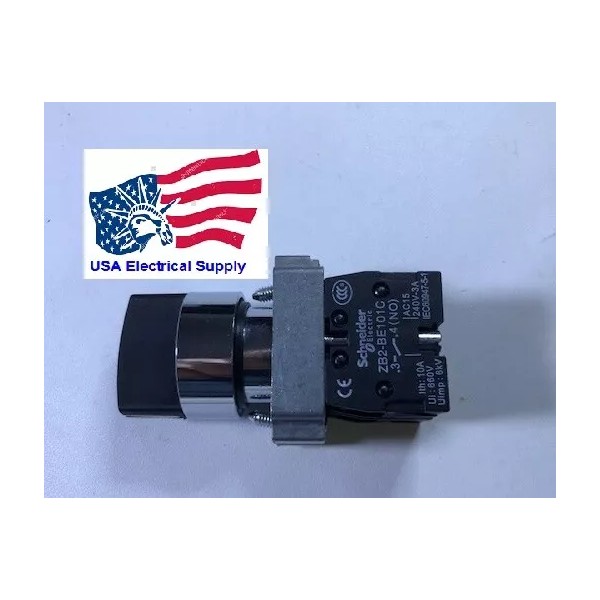 Schneider XB2BD73C Heavy Duty Select Switch Spring Return from Left to Center, Right Maintained, 3 Position 2NO Contact Block Maximum AC Voltage: 600V Maximum Current: 10 A, 6KV, 230V-3A