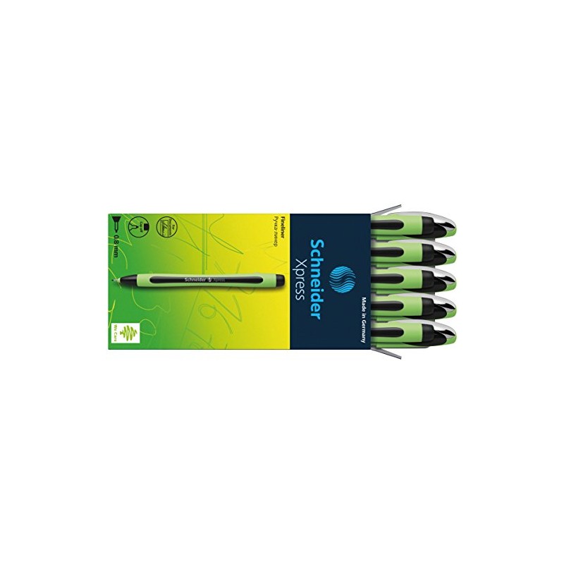 Schneider Xpress Premium Fineliner, 0.8 mm Porous Point, Light Green Barrel, Black Ink, Box of 10 Pens (190001)