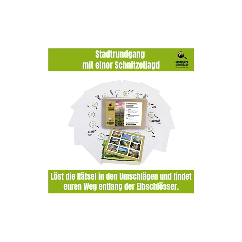 - Tolles Dresden Geschenk: Die Stadttour ist ein wunderbares Geschenk für deine Liebsten, die die Dresdner Elbschlösser und den Körnerplatz auf eine neue und unterhaltsame Art und Weise entdecken möchten. Nimm beliebig viele Personen mit auf deine Schnitzeljagd, du benötigst je Gruppe nur ein Stadtspiel-Box, Box ist mehrfach verwendbar.
