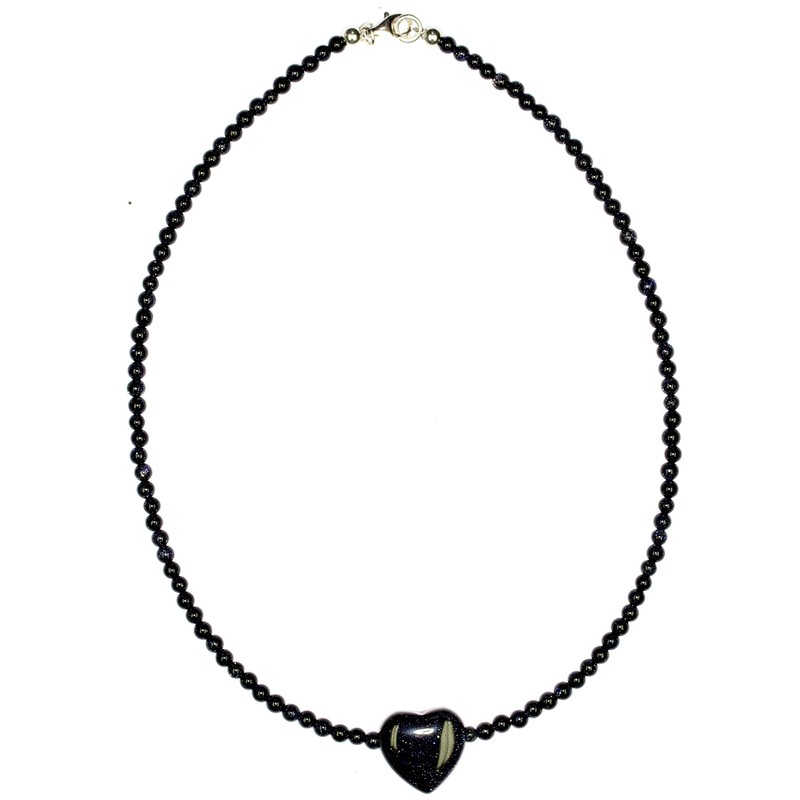 schoener-mineralienschmuck / Edelsteinschmuck Blue stone necklace with heart clasp, 925 sterling silver, model number 5237, Stainless Steel