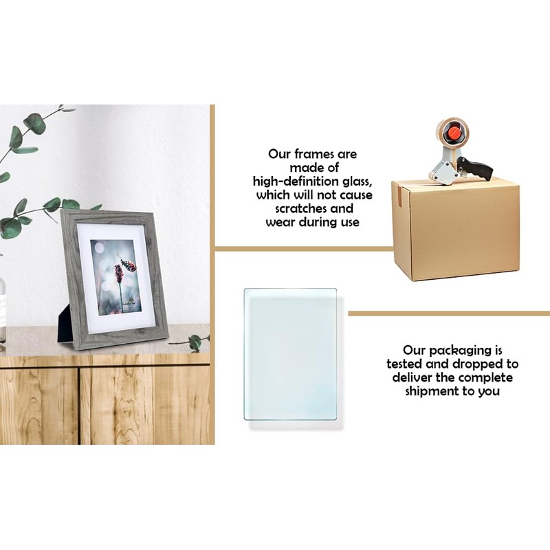 • QUALITY: 5x7 frames are made of MDF and real glass. It make the frame strong and the real glass has high transparency.