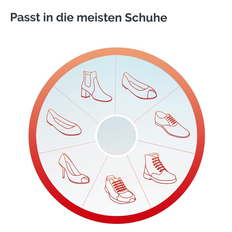 - FITS MOST SHOES, WITHOUT GLUE: This orthopaedic shoe insole fits most shoes and is easily interchangeable between shoes without gluing. A sign on the back of the sole indicates which sole is to be assigned to which side of the foot