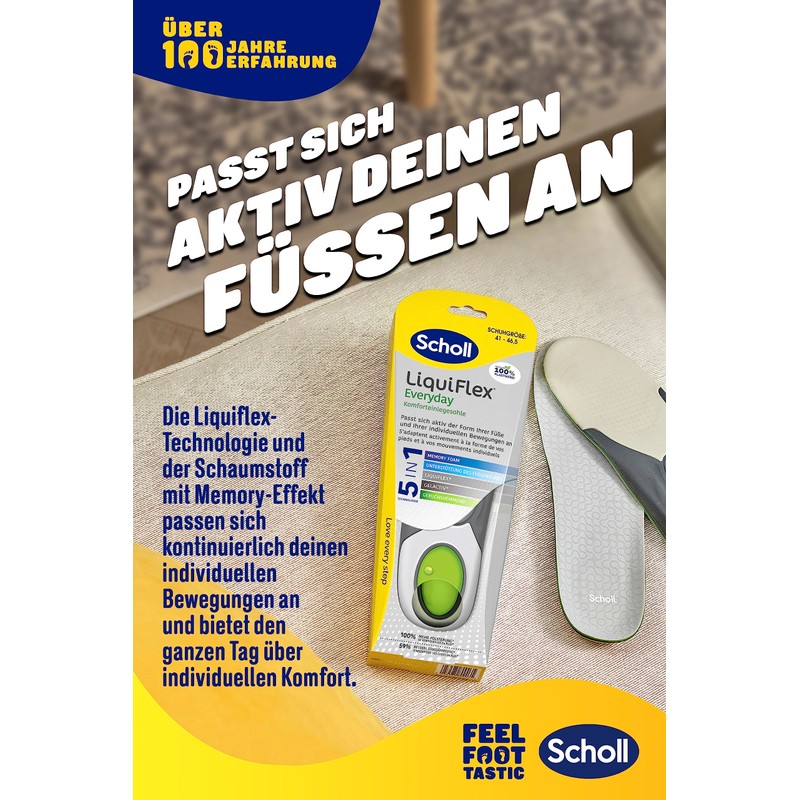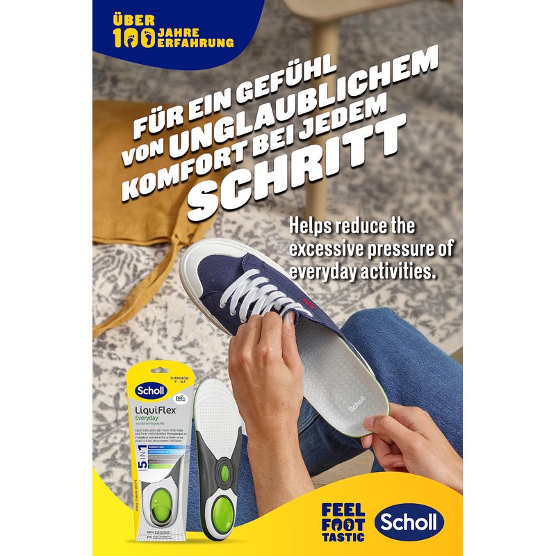 Scholl LiquiFlex Everyday L Comfort Insoles, More Memory Foam Cushioning and Arch Support, Pack of 2