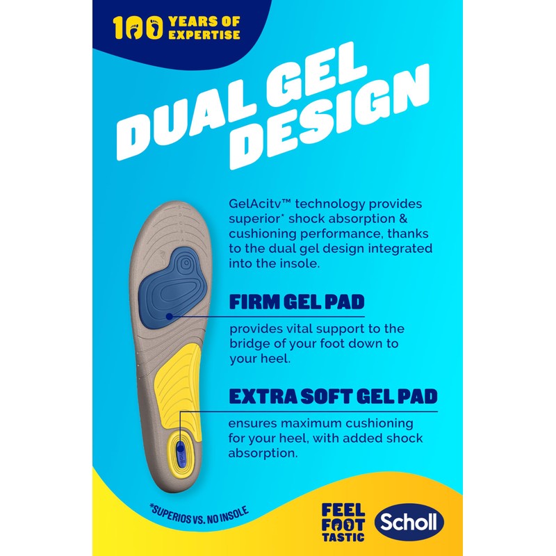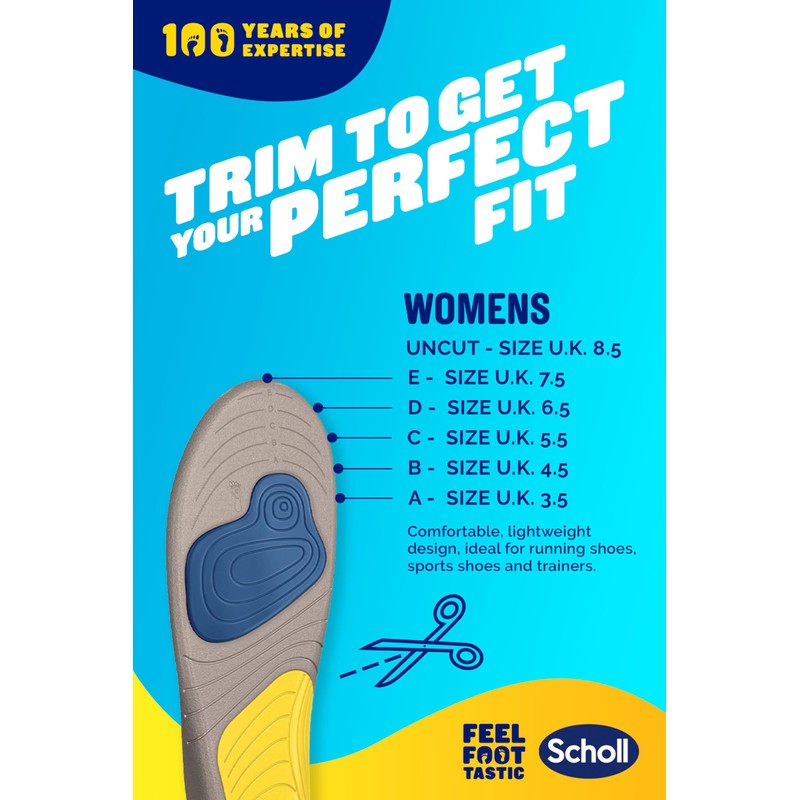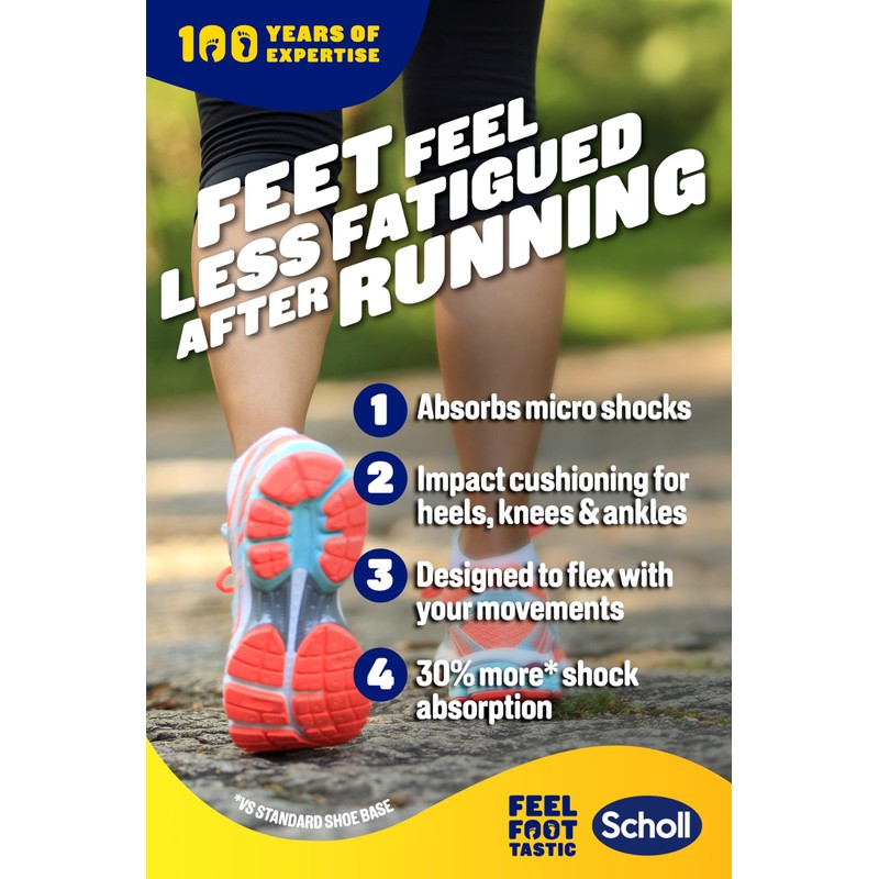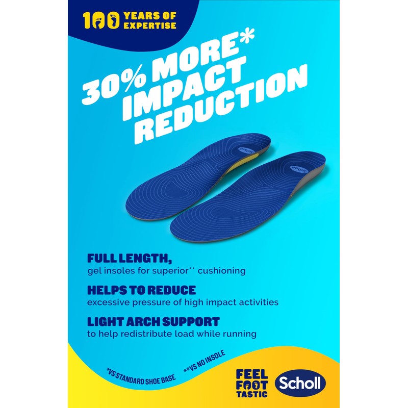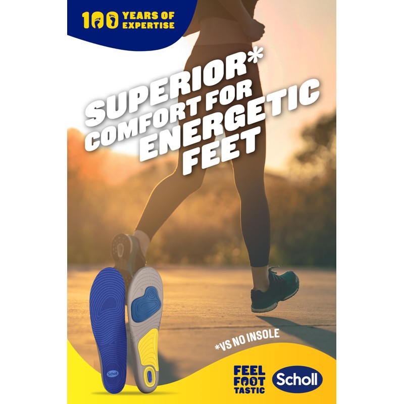 - AMPLIFY YOUR RUNNING COMFORT: Experience a new level of comfort in your running shoes with our foam and gel construction, designed to flex and move with you. Join the 7 out of 10 consumers who reported enhanced comfort during their energetic activities with Scholl insoles.