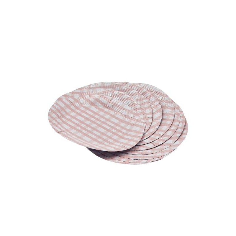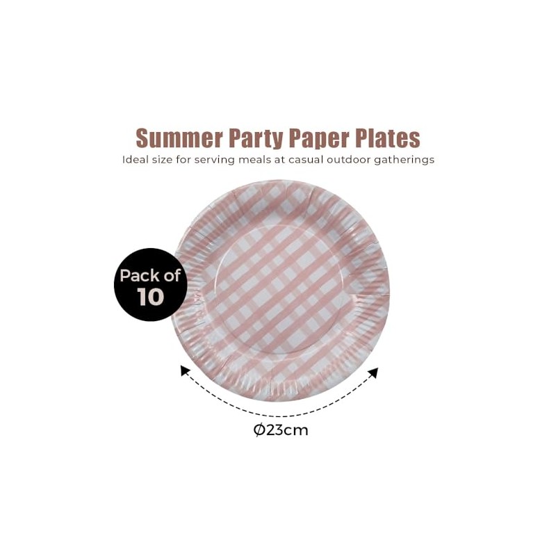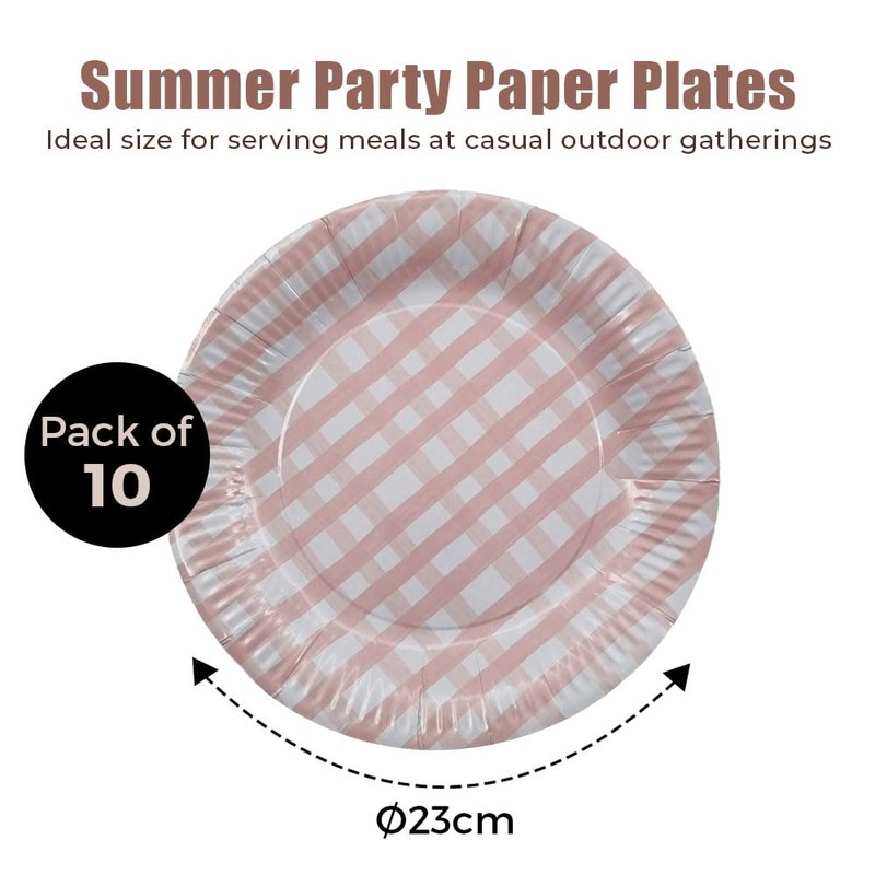 schone Summer Party Paper Plates – 10 Pack 23cm Gingham Print Disposable Plates – Assorted Colours – Outdoor Dining & BBQ Tableware (Pink)