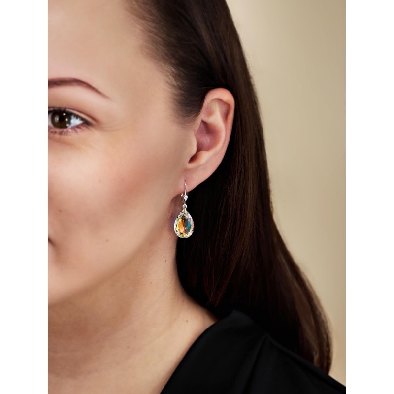 - Total length of the earrings including hooks: approx. 32 mm. Crystal dimensions: 16 x 11 x 7 mm (H x W x D). Weight per pair: approx. 3.9 g. Box contents: 1 pair of silver earrings with jewellery case.