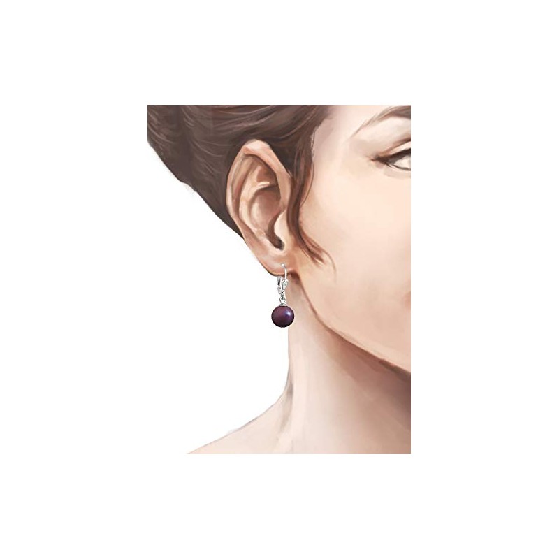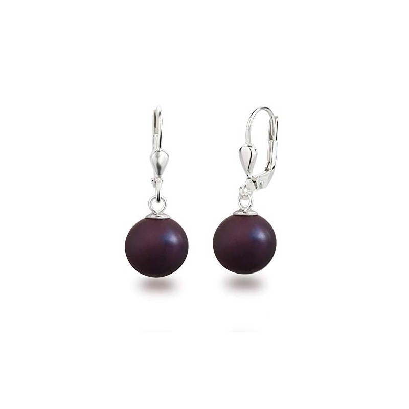 Schöner-SD Pearl Drop Earrings 925 Silver 10 mm, Silver, Berry Matt