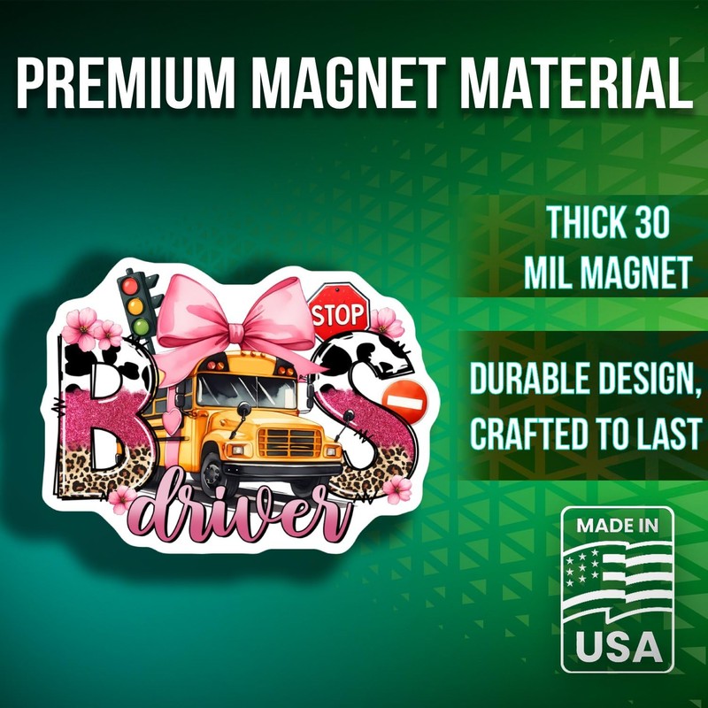 School Bus Driver Magnets - Cute School Bus Decor - Fun Driver Gifts - Floral Design - 2 Pack - Made in USA - PLDFMAG4451