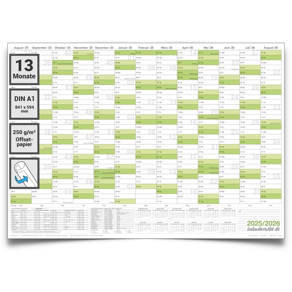 School Calendar 2025/2026 Year Planner (84.0 x 59.4 cm DIN A1) - Rolled Premium Paper - School Year 2025/26, School Year Calendar, Calendar for Students and Teachers, Large School Calendar Wall