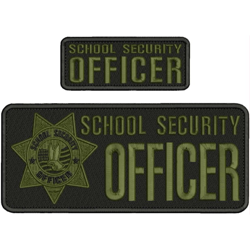 School Security Officer 2 EMB Patches 4x10 And 2x5 Velcr@ On Back Od/black