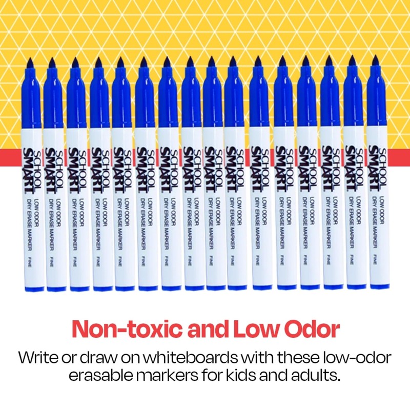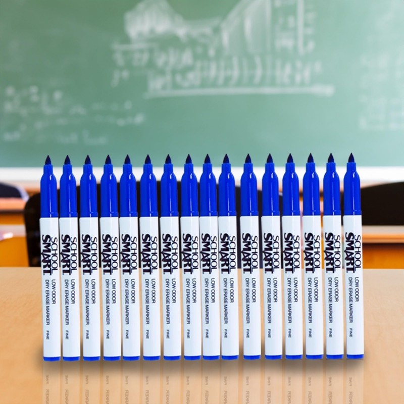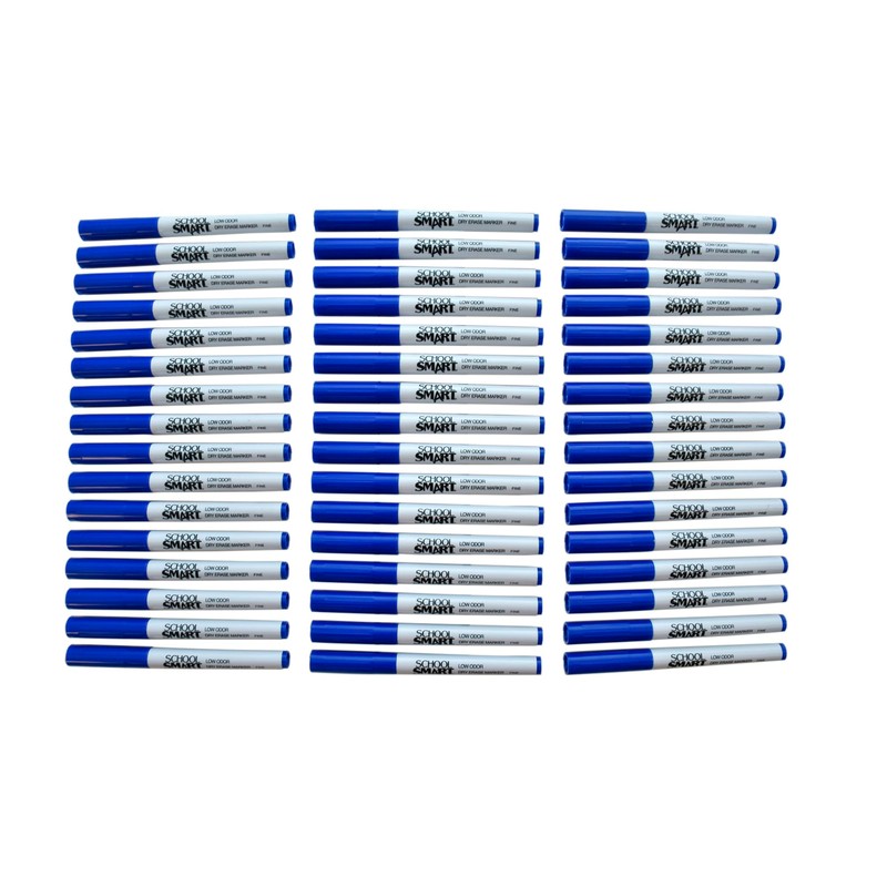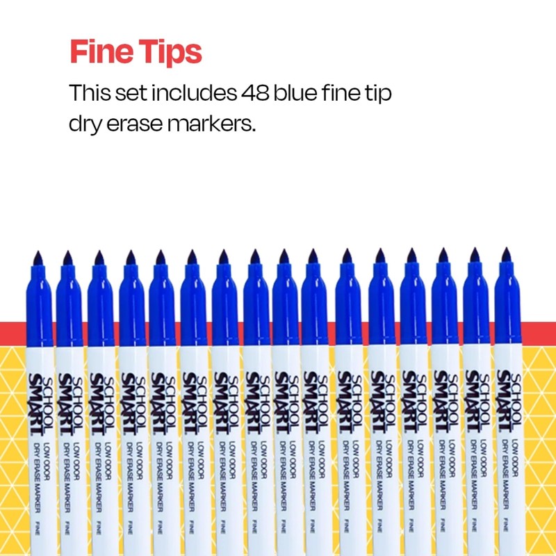 School Smart Dry Erase Pen Style Marker, Fine Tip, Blue, Pack of 48
