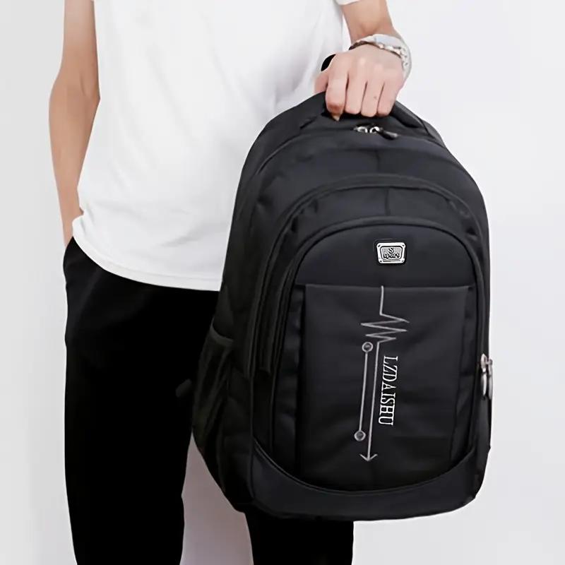 Schoolbag, male student trendy backpack, large capacity backpack, campus leisure travel backpack, Oxford cloth bag - Colour: black, Size: One size (small)