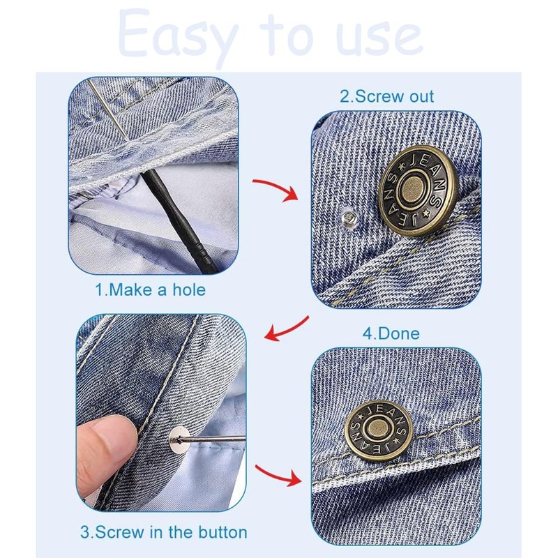 - 【 High-quality metal buttons】Our metal buttons for jeans are made of high-quality brass, which is strong, rust-proof and corrosion-resistant.Seamless jeans buttons are installed easily and securely using threaded connections and can be removed and reused.