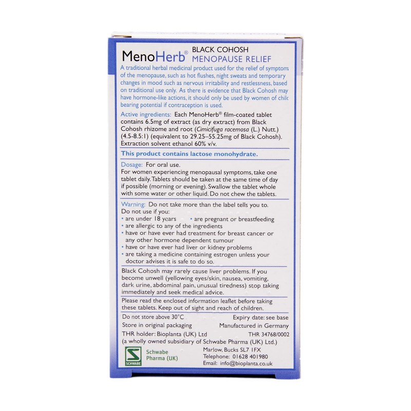 Schwabe Pharma - MenoHerb - Menopause Relief - Black Cohosh Root Extract 6.5mg - Traditionally Used for Hot Flushes, Night Sweats and Mood Swings - 30 Tablets