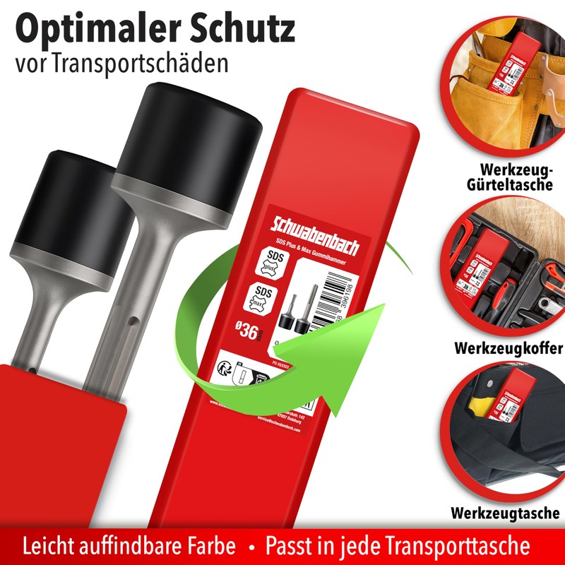 Schwabenbach SDS Plus & Max Rubber Hammer 35 mm + Adapter - Driven Rubber Hammer Attachment for Hammer Drill - For Laying Tiles, Levelling Pipes & Radiators, Tiling Hammer
