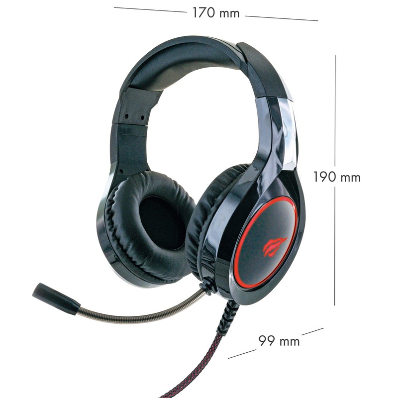 - Illuminated gaming overear headset: Wired gaming headset with microphone, adjustable straps, volume control and side RGB LED light. Suitable for e-sports and gaming, but also for listening to music.