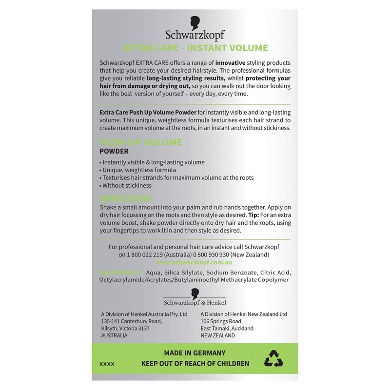 Schwarzkopf Extra Care Styling Push Up Volume Powder, Volume & Control, Matt ...