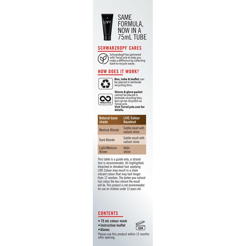 Schwarzkopf LIVE Colour Hazelnut, Semi-permanent hair colour, lasts up to 12 washes