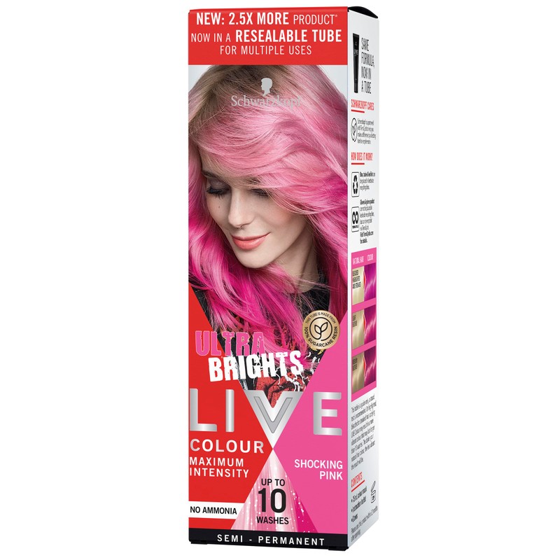 Schwarzkopf LIVE Colour Ultra Brights Shocking Pink,Semi-permanent Hair Colour,Lasts Up to 10 Washes