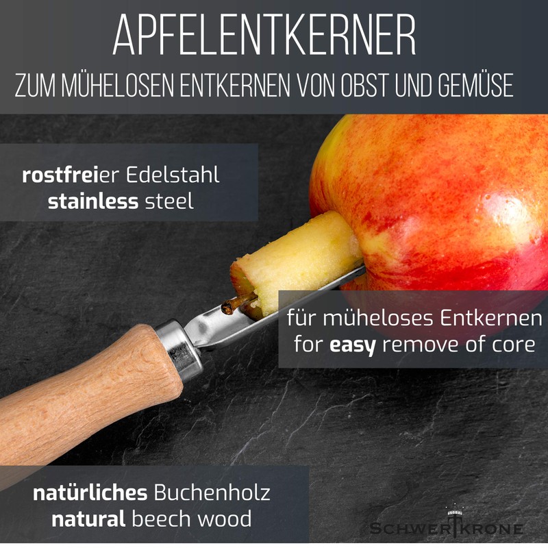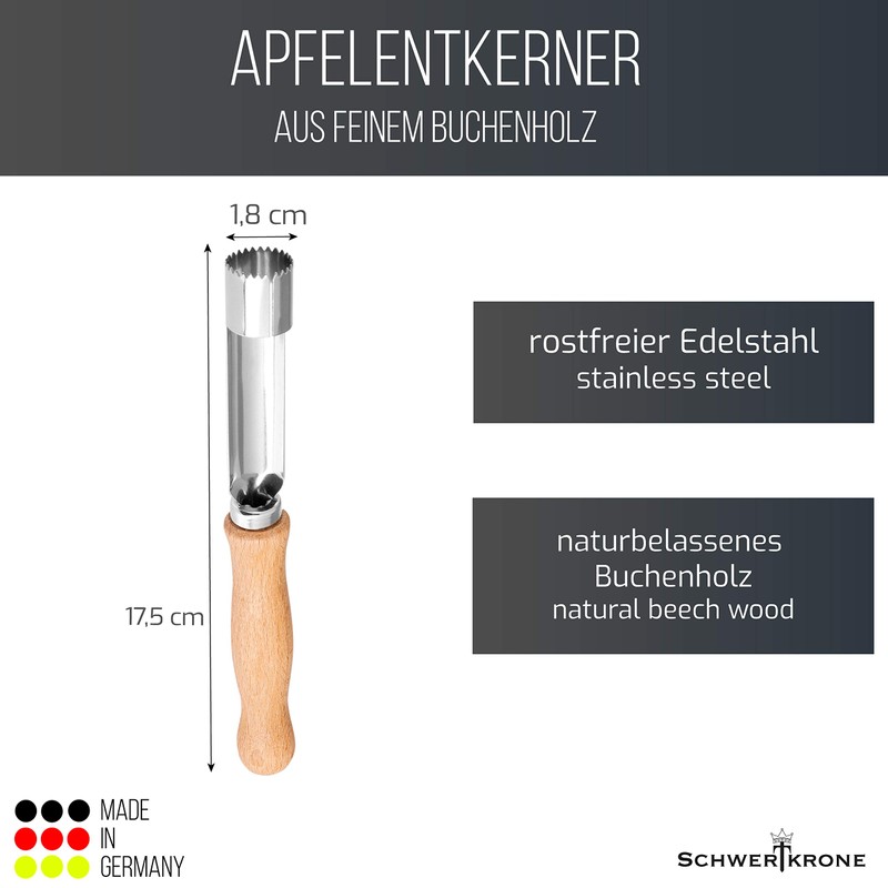 Schwertkrone Apple Corer Stainless Steel Made in Germany Beech