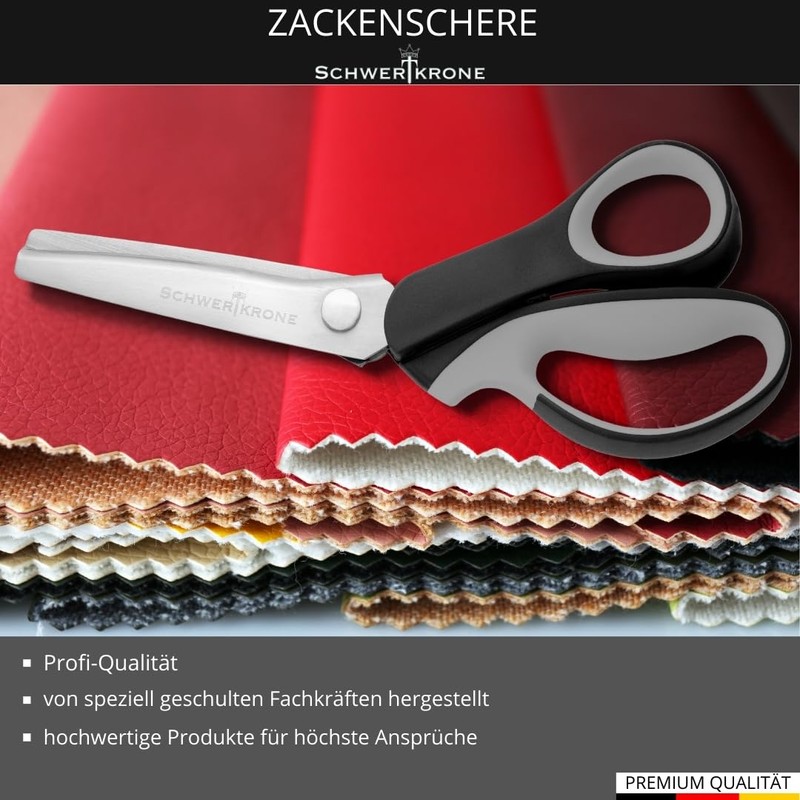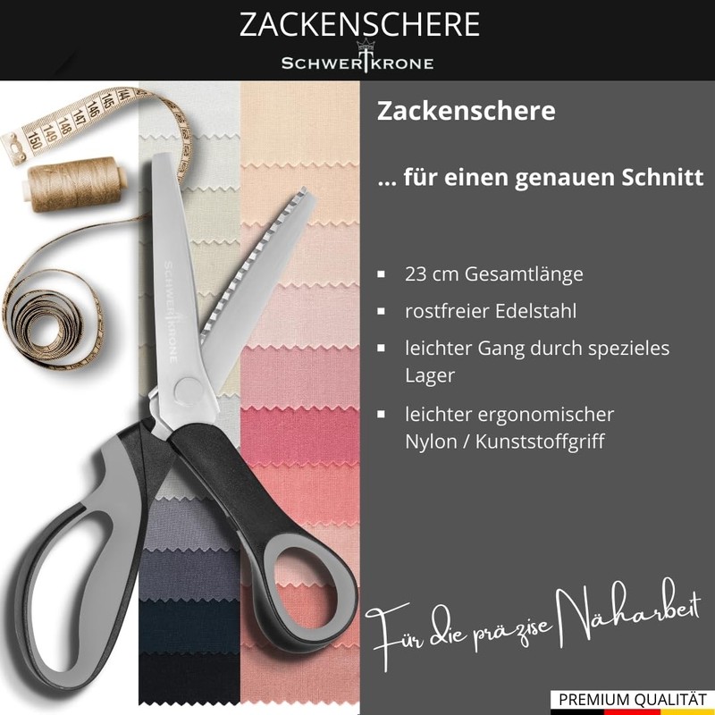 Schwertkrone Pinking Shears Premium Zig Zag Scissors 23 cm Stainless Steel with Plastic Handle Double Ball Bearing