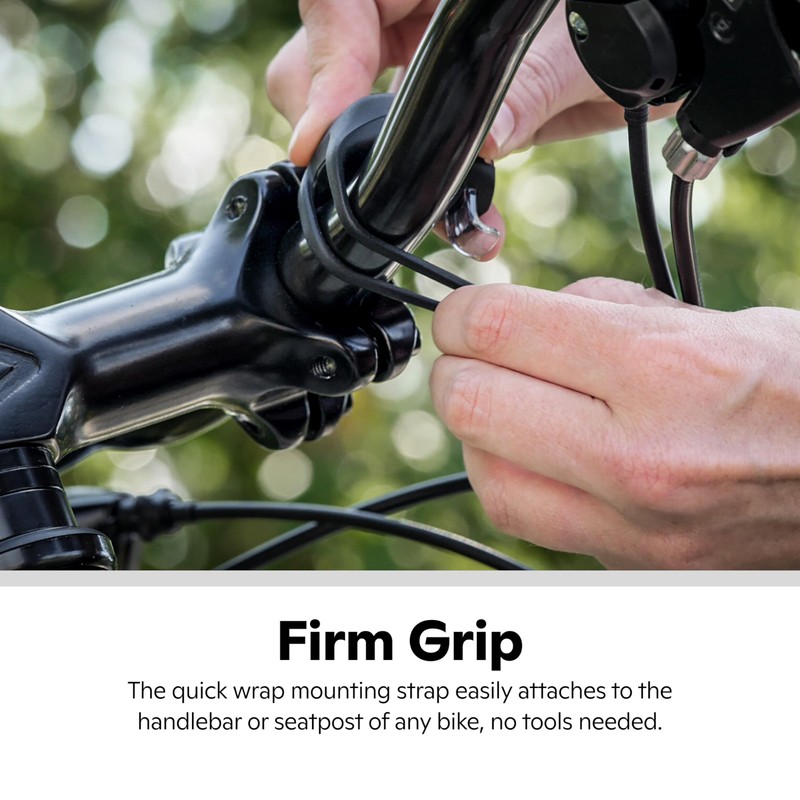 - Fácil de acoplar al manillar y a la tija de cualquier bicicleta, sin necesidad de herramientas.