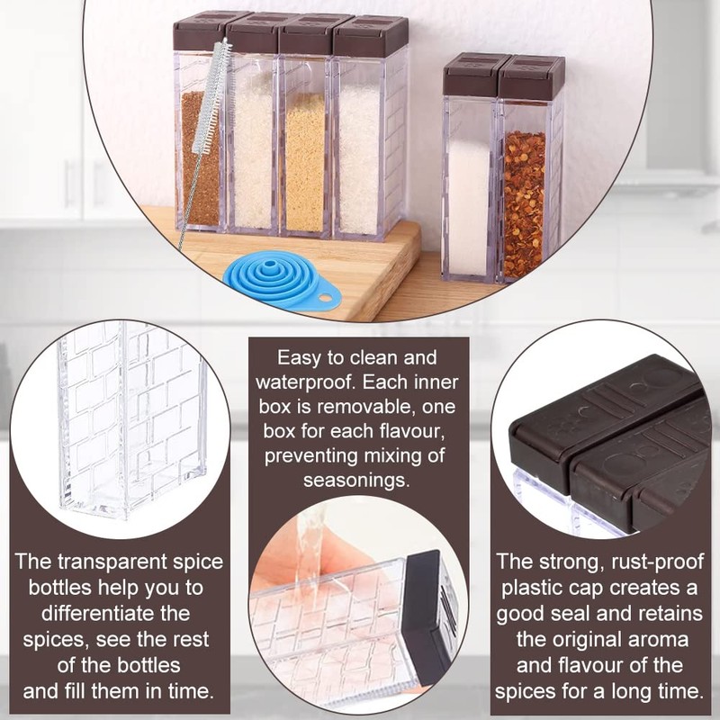 - Organise and store: these transparent plastic spice jars set are the perfect solution to store and organise everything in your kitchen at a low cost. It maximizes limited space and keeps your countertops tidy. The spice jar has a matching storage box, which takes up less space in the kitchen and is convenient to use.