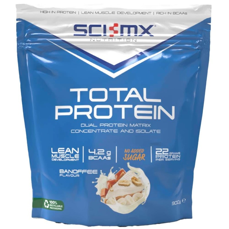 SCI-MX Total Protein - Dual Protein Concentrate & Isolate Protein Powder - Lean Muscle Development - Banoffee • No Added Sugar • 4.2g BCAAs + 22g Protein per Serving • 900g