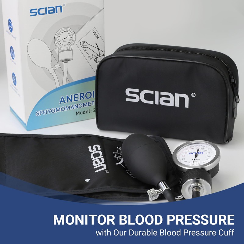 SCIAN Manual Blood Pressure Cuff - Aneroid Sphygmomanometer with European Cuff 8.7-16.5" and D-Ring, Come with Carrying Bag for Nurse Doctor Senior Adult, Black