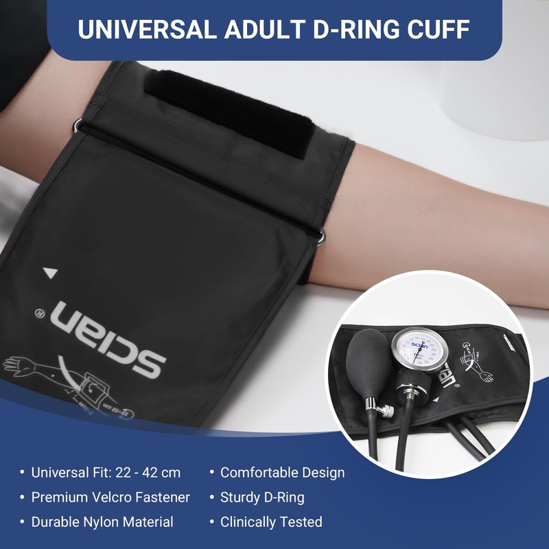 - Durable European Style Cuff: This Aneroid Sphygmomanometer Equipped with New European Style Cuff and a practical D-Ring for easy one-hand operation, Ideal for medical professionals and home users, and our universal adult cuff 8.7”-16.5” fits arm sizes from small to extra-large.