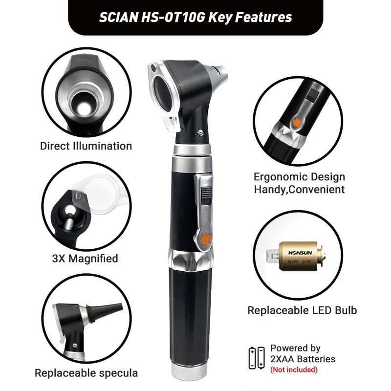 - 【Multifunction Medical Otoscope】: Scian Otoscope is design to view the ear wax, infections, tympanic membrane, external ear canal to diagnose outer and middle ear pathologies. Work perfectly for medical pros and registered nurse in ear checking.
