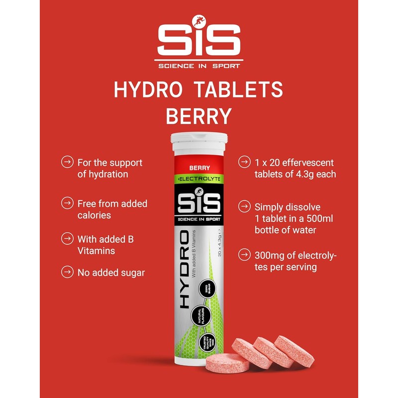 Science in Sport Hydro Electrolyte Tablets 20 pcs Berry Flavor | Vegan & Gluten-Free | Supports Hydration & Electrolyte Balance | Packaging May Vary