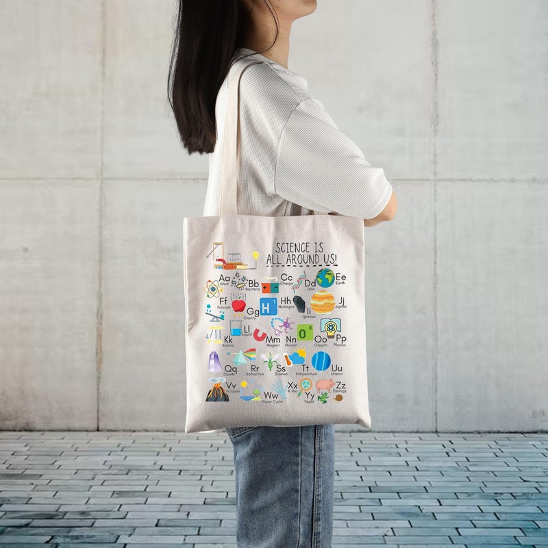 Science Is All Around Us Gift Science Alphabet Gift Science Lover Scientist Gift Science Teacher Tote Bag (Science All Around CA)