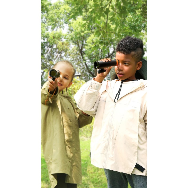 - The set consists of two monoculars that children can easily assemble themselves and in a few simple steps either into binoculars or a telescope or share individually with friends to discover together.