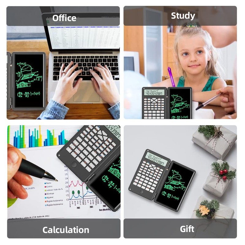- Scientific Calculator with Notepad: 6-inch large screen writing pad with and a stylus on the side of flip place, which can effectively save your pen and paper, and you can calculate and record what you want.