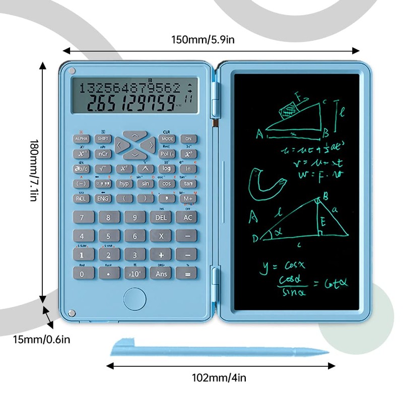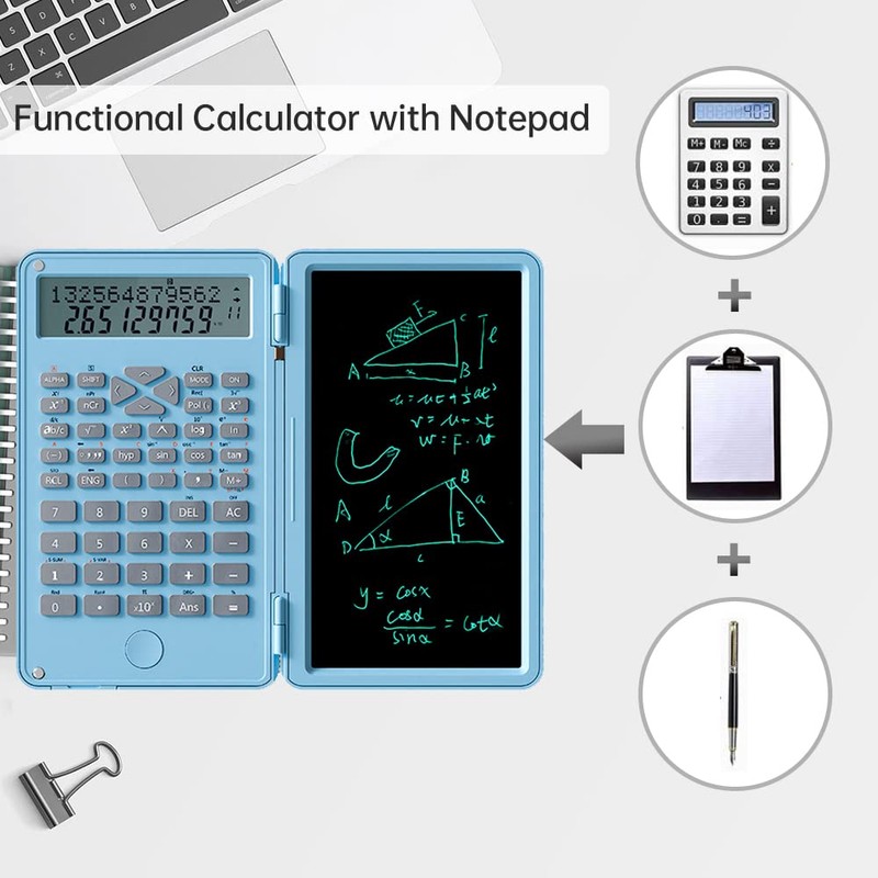 Scientific Calculator with Writing Tablet,Professional Foldable Calculator Pocket Standard Calculator with Erasable LCD Writing Pad for Office Home Business(Blue)