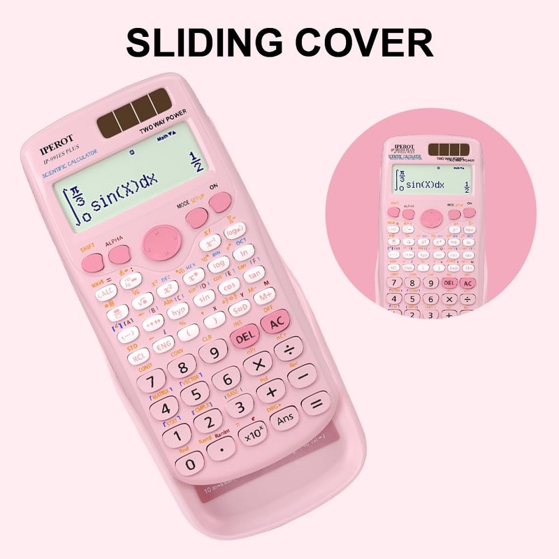 Scientific Calculators, IPEROT Solar Scientific Calculator Large Screen 417 Function, Calculators Very Suitable for High School and College Students Calculus Algebra and Other Math Textbooks (Pink)