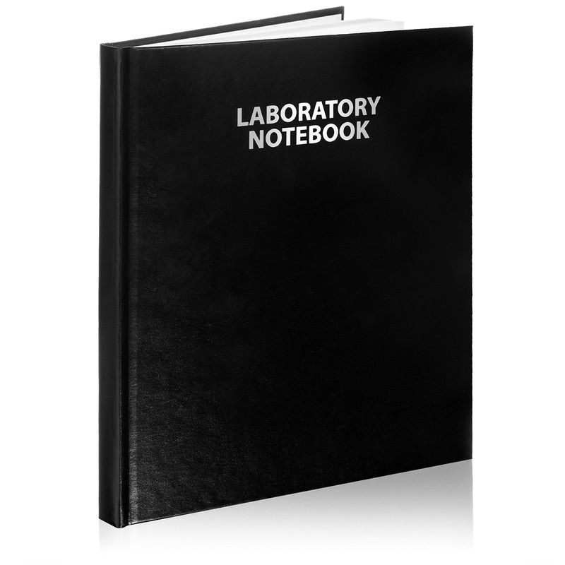 - Black Cover 9 1/2" * 11 1/2" with "LABORATORY NOTEBOOK" embossed.