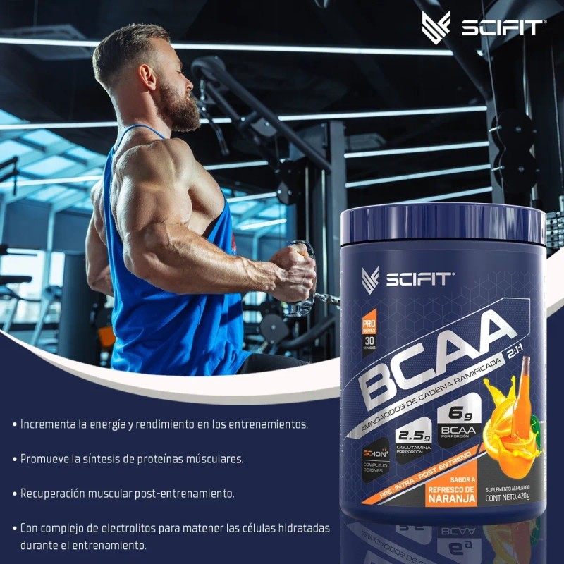 Scifit Aminoácidos Bcaa + Glutamina 420g | Complejo De Iones Sabor Refresco de naranja