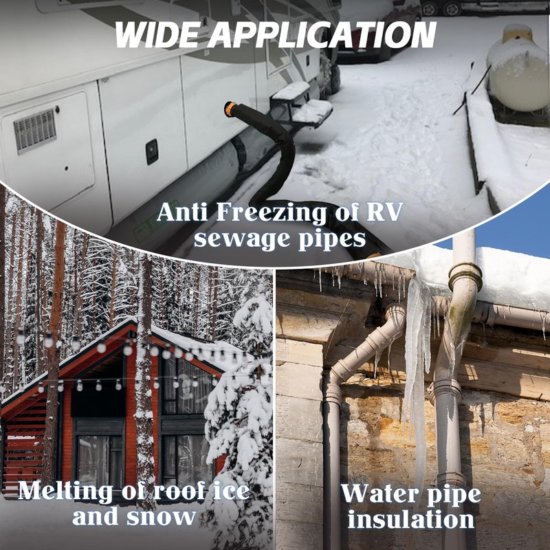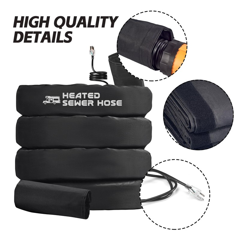 - Multi-Selection: Our heated sewer hose for rv camper design has three lengths of 10ft, 15ft and 20ft for selection. Choose heating sewage hose suitable for you according to your needs.