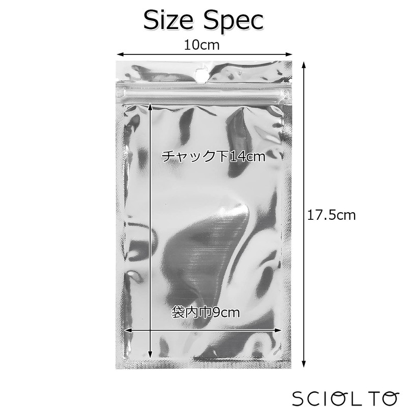 SCIOLTO Aluminum Bags, Pack of 100, Zipper Included, [Width 3.9 x Height 6.9 inches (10 cm) x Height 6.9 inches (17.5 cm)] Storage Bag with Zipper Plastic Bag Storage Bag Large Small (Width 3.9 x Height 6.9 inches (10 cm) x Height 6.9 inches (17.5 cm)