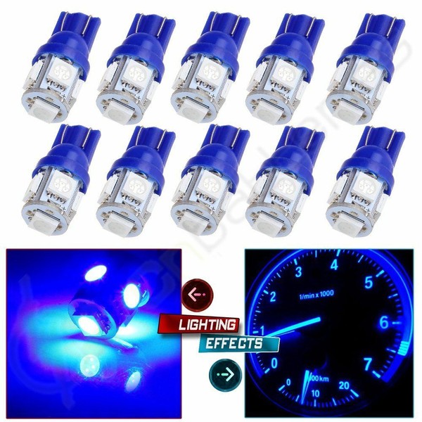 SCITOO 10 x Blue T10 168 2825 194 5050 SMD 5 LED Bulbs For Car License Plate Lights